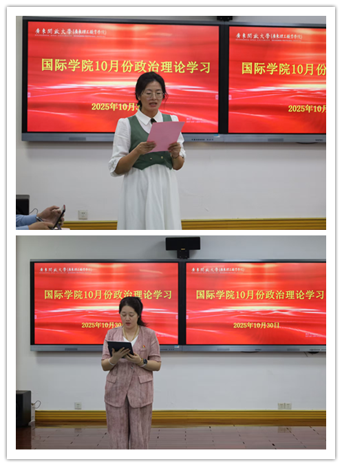 10月30日下午,国际学院教工党支部召开10月份政治理论学习会议。会议由学院党总支书记温国雄主持,学院全体教职工参会,2位党员教师围绕指定材料开展导学。