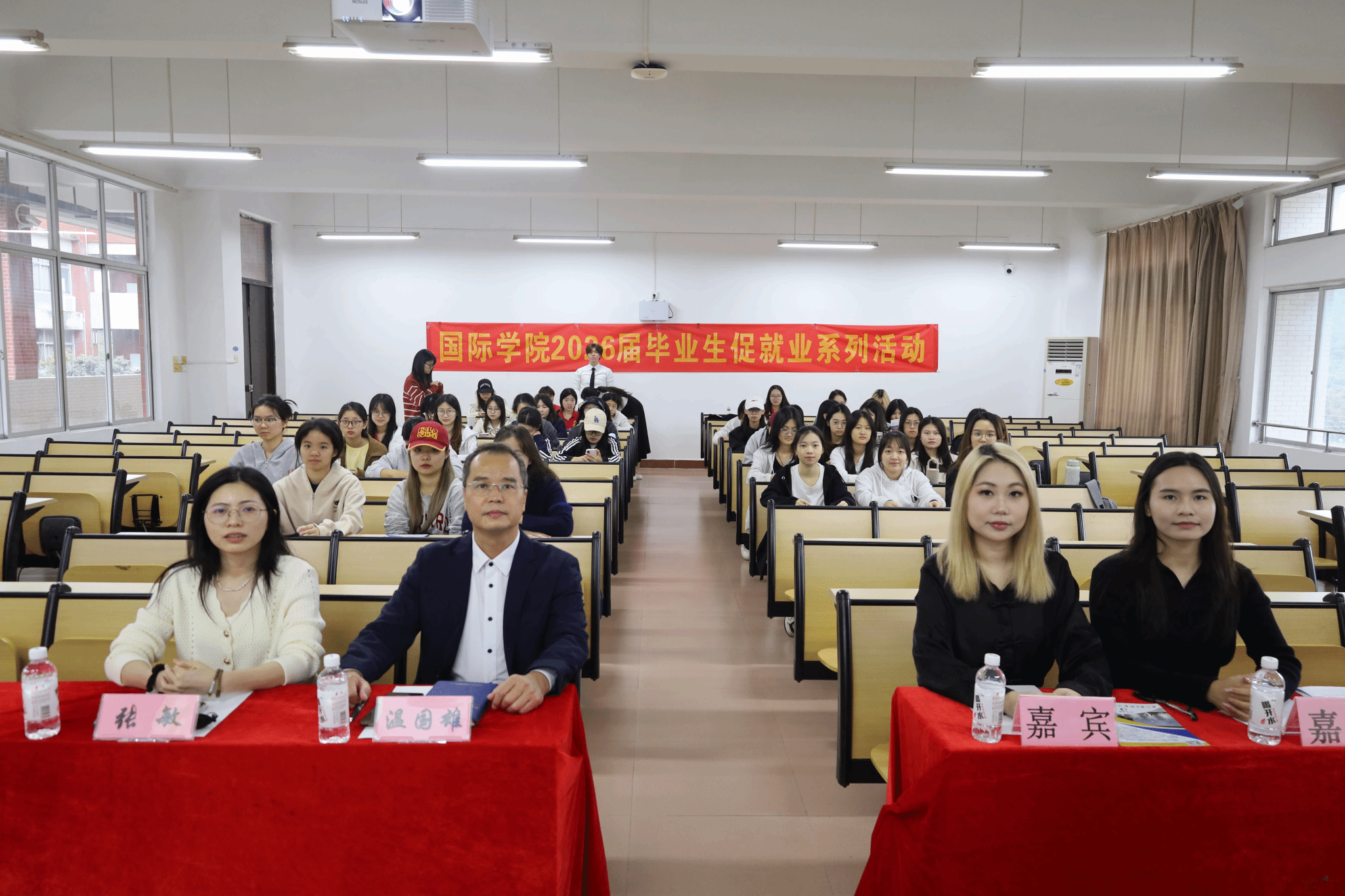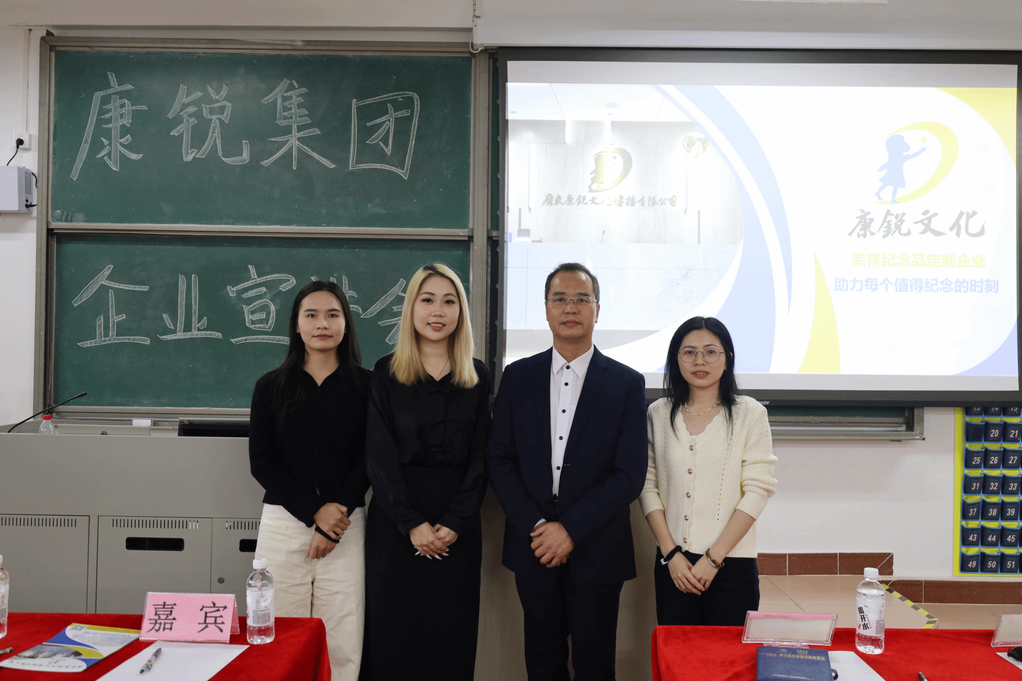 11月13日下午,国际学院顺利开展广东康锐文化传播有限公司专场宣讲会。康锐人事行政经理钟颖诗、人事行政专员方琼受邀出席,国际学院党总支书记温国雄、专任教师王诚谦、辅导员张敏及2026届毕业生参与活动。