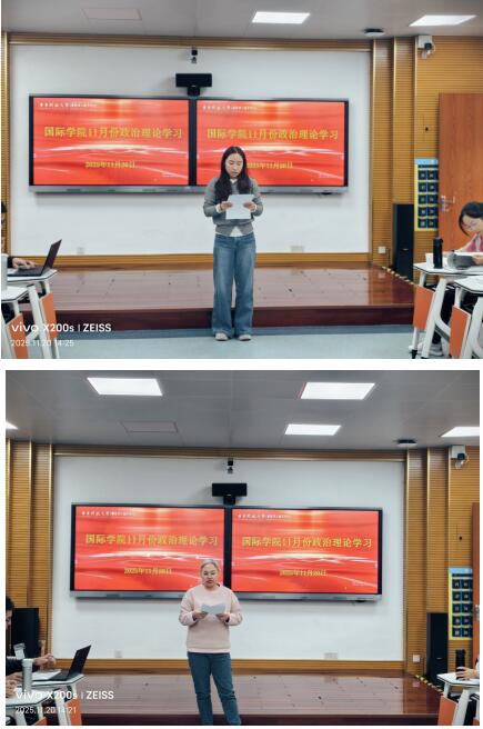 11月20日下午,国际学院教工党支部召开11月份政治理论学习会议。会议由学院党总支副书记、副院长(主持行政工作)罗红卫主持,学院全体教职工参会,2位党员教师围绕指定材料开展导学。