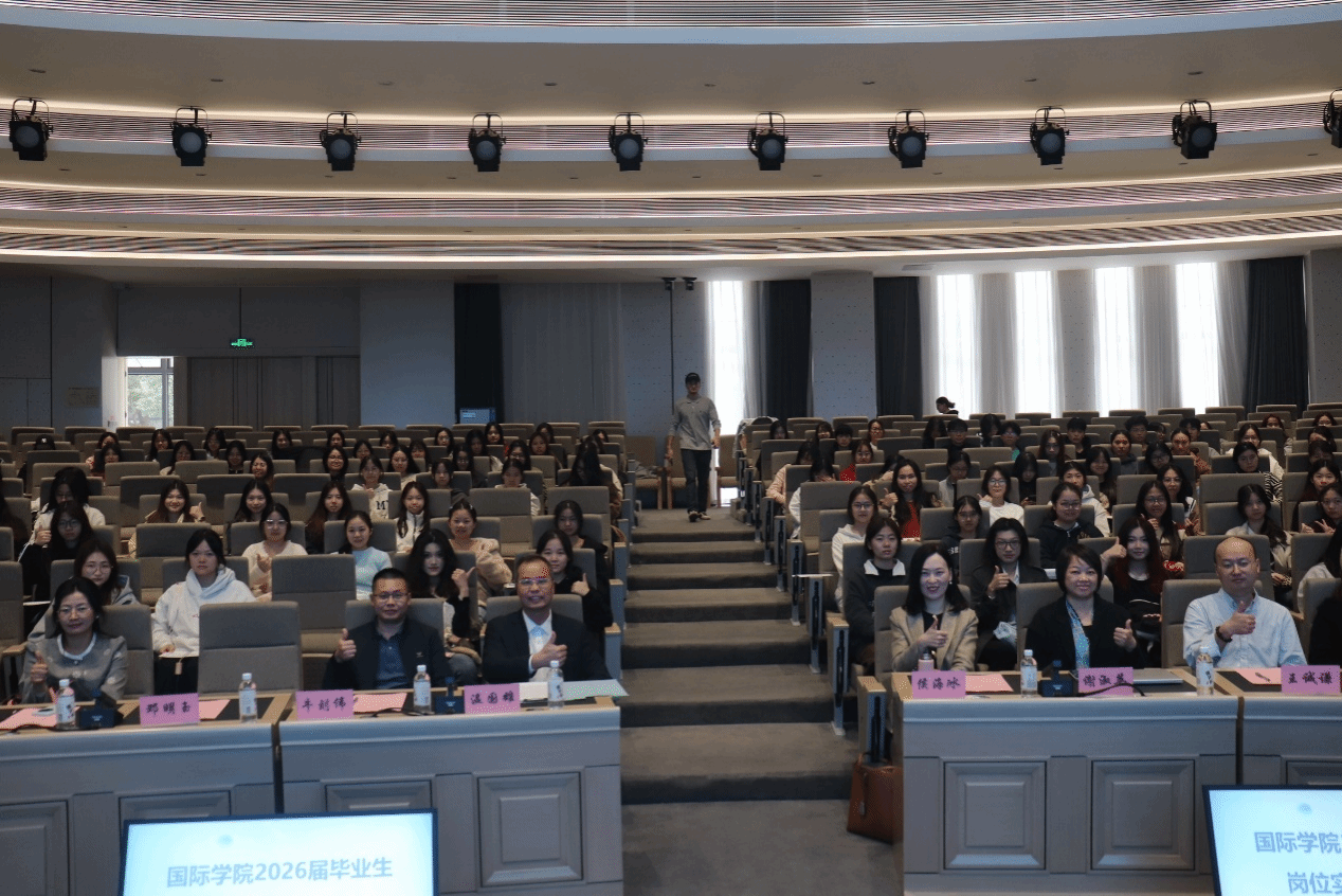 11月27日下午,国际学院在中山校区H栋多功能厅召开2026届毕业生岗位实习动员大会。学院党总支书记温国雄、副院长侯海冰、专业负责人、实习指导老师代表、毕业班辅导员及全体2026届毕业班学生参加大会。