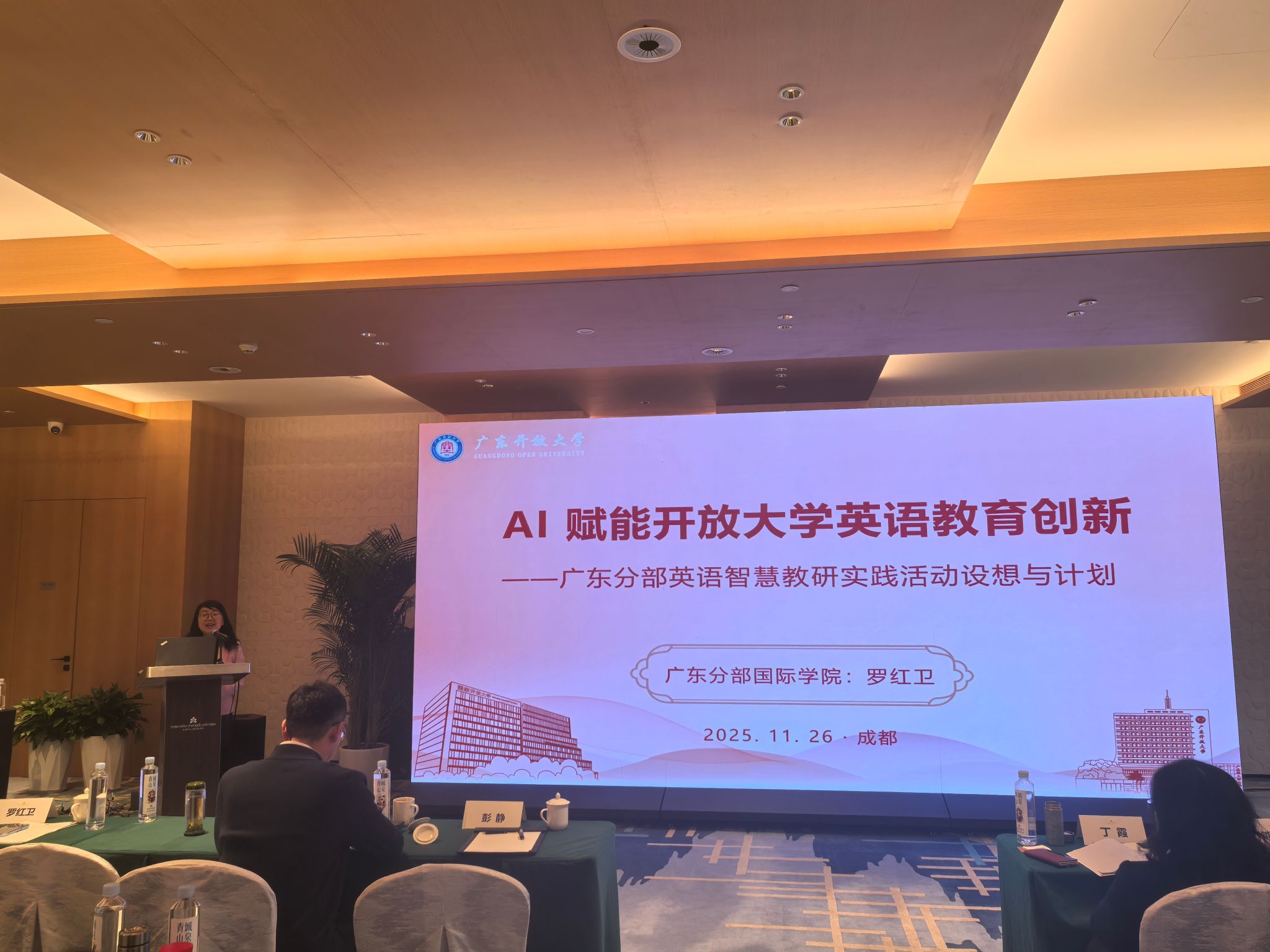 11月25-27日,由国家开放大学外语学院主办的2025年全国开放大学体系英语类课程智慧教学教研活动暨中心组研讨活动在成都召开。我校国际学院副院长(主持行政工作)罗红卫教授携开放教育骨干教师赵翠芳和欧靖参加了研讨会。
