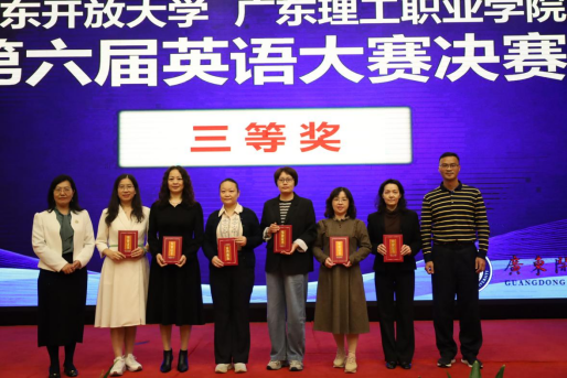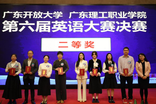 11日上午,广东开放大学(广东理工职业学院)第六届英语大赛决赛隆重开场,来自广东省本、专科院校的五位资深英语教学与研究专家担任评委;选手们在台上从容自若、各显风采,既展现了扎实的外语功底,更传递出广开办学体系开放教育和高职教育学子积极向上的精神风貌。经过激烈角逐,来自中山开放大学和广东理工职业学院的选手分别荣获非英语专业组、英语类专业组特等奖,来自汕头开放大学、惠州开放大学、广开培黎分校(培黎职业学院)等广开体系分校、教学点及广东理工职业学院南海校区的12名选手分别荣获两个比赛组别的一等奖、二等奖。