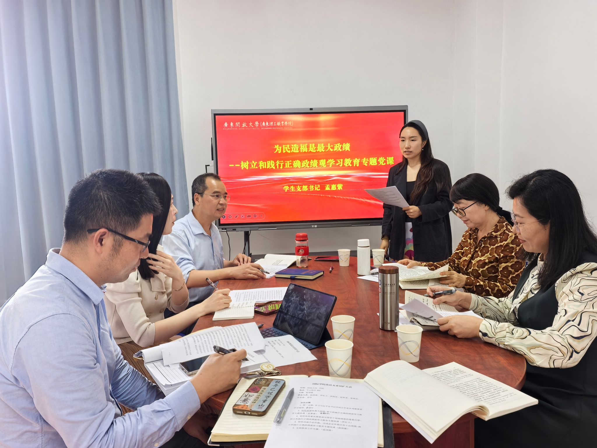 2026年3月25下午,国际学院在中山校区教学楼401召开党总支委员扩大会议,党总支全体委员、教工和学生党支部书记、学院团委书记、辅导员参加了会议,会议由党总支书记温国雄主持,学院学生党支部书记孟惠紫围绕“为民造福是最大政绩——树立和践行正确政绩观”主题作专题党课。
