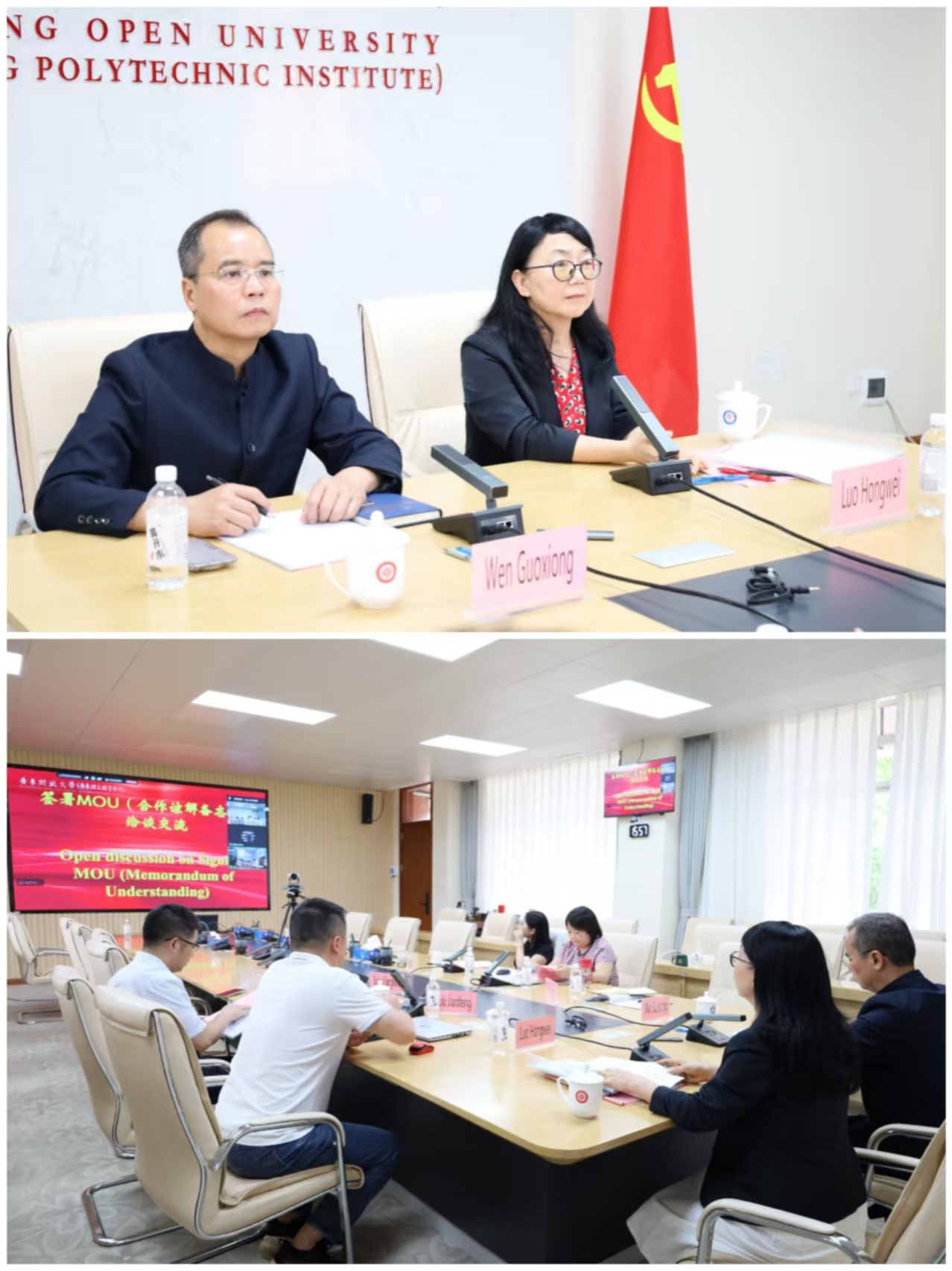 4月28日下午,我校与老挝万象省技术学院(Vientiane Province Technical College)成功举行线上合作洽谈会。老挝万象省技术学院院长Chanthavong KEOVILAY,副院长Thongthan PHONEPHILOM、Khamphet ONPASERD等代表,与我校国际学院党政班子、专业负责人及机电工程学院(标准化学院)骨干教师代表共同参会,会议由国际学院副院长罗红卫(主持行政工作)主持。