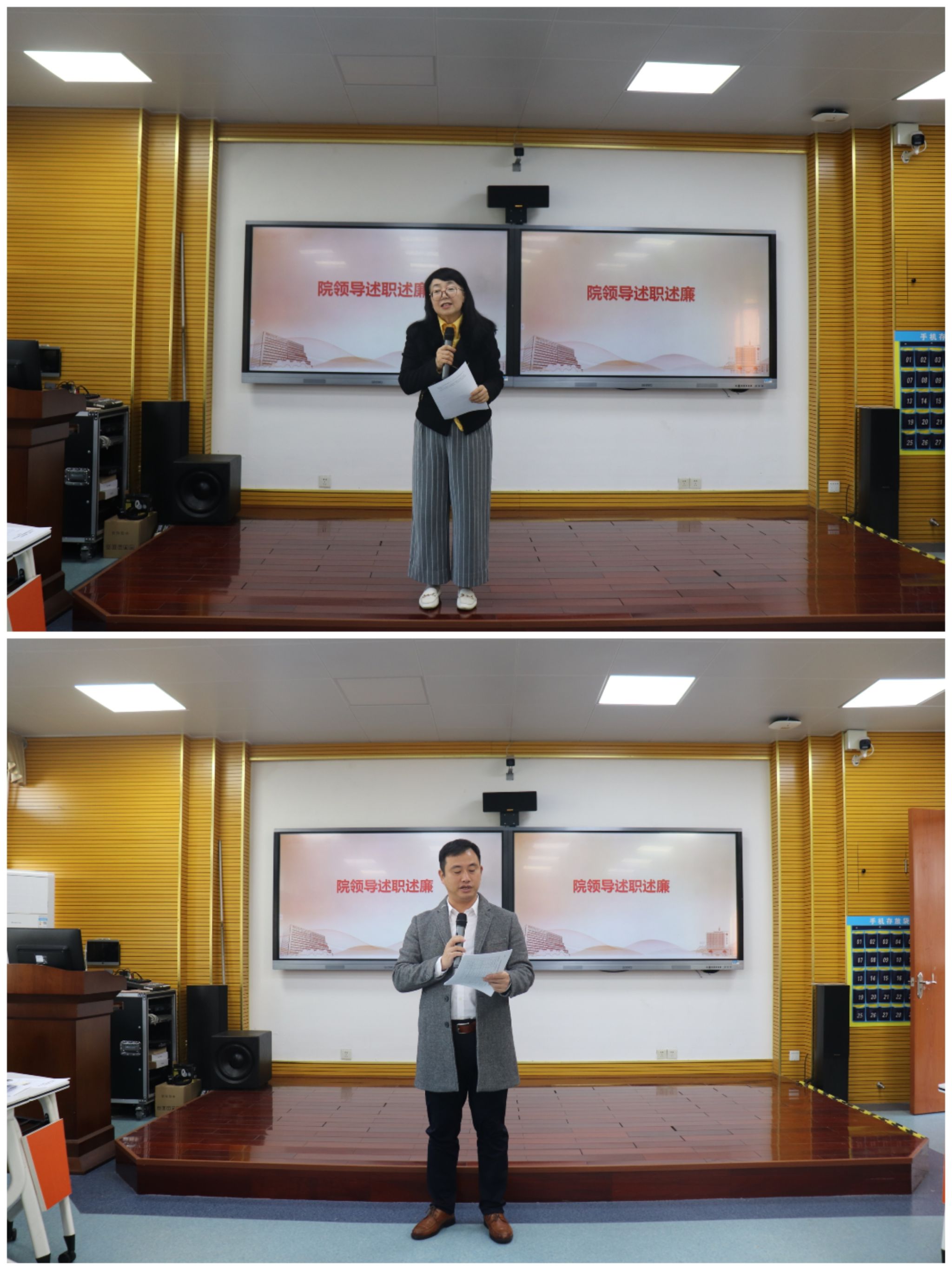 会上,院领导逐一进行述职汇报和廉洁自律情况报告,对一年来的工作进行总结梳理,并对下一年的工作进行规划展望。学院副院长罗红卫围绕学院教育教学、学科建设、师资队伍建设、国际交流合作等方面的亮点工作进行了汇报,并就学院未来发展规划和2025年重点工作进行介绍。学院党总支副书记葛展奕全面回顾了过去一年学院党建工作的开展情况,并就个人履职情况进行了详细汇报。