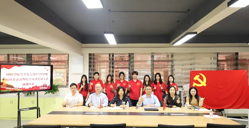 3月26日下午,国际学院学生党支部在一站式学生服务社区召开2025年度组织生活会暨民主评议党员大会。会议由党支部书记孟惠紫主持,党支部全体师生党员参加了会议。