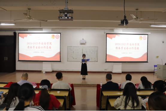 为加强学生干部骨干队伍建设,赋能团学工作高质量发展,10月22日晚,国际学院在阶梯一教室成功举办第十八次学生代表大会暨第十九届团学委员换届大会。学院党总支书记温国雄、团委书记龙信、团委副书记孟惠紫、Sunflower Garden心灵驿站站长张敏、专任教师王诚谦以及各年级学生代表出席本次大会。